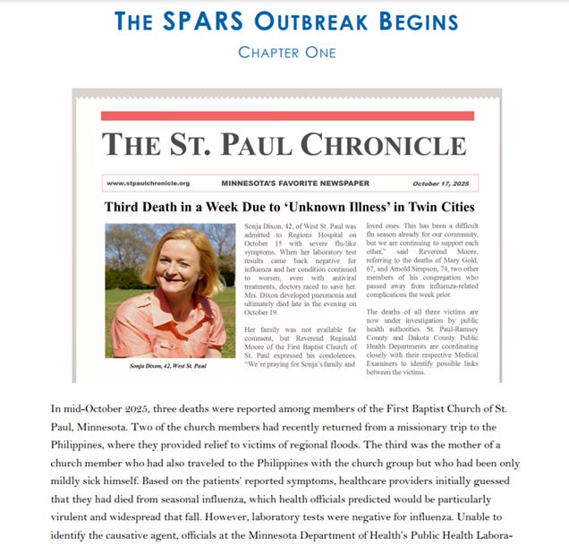 The fictional account looks and sounds like it could have been taken out of any actual MSM narrative about the last pandemic (or simply Event 201 fan-fiction).